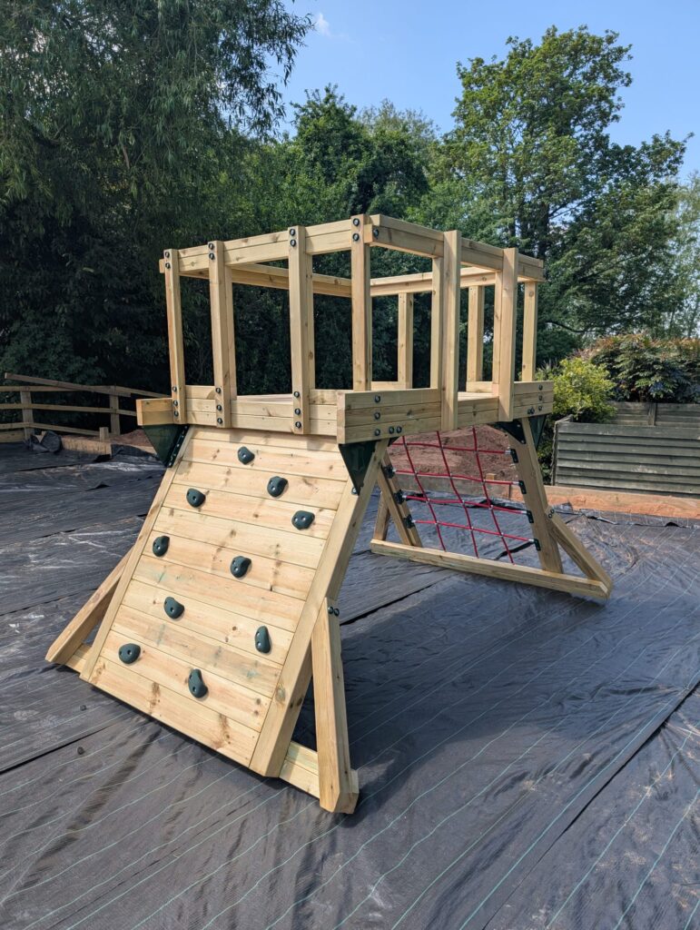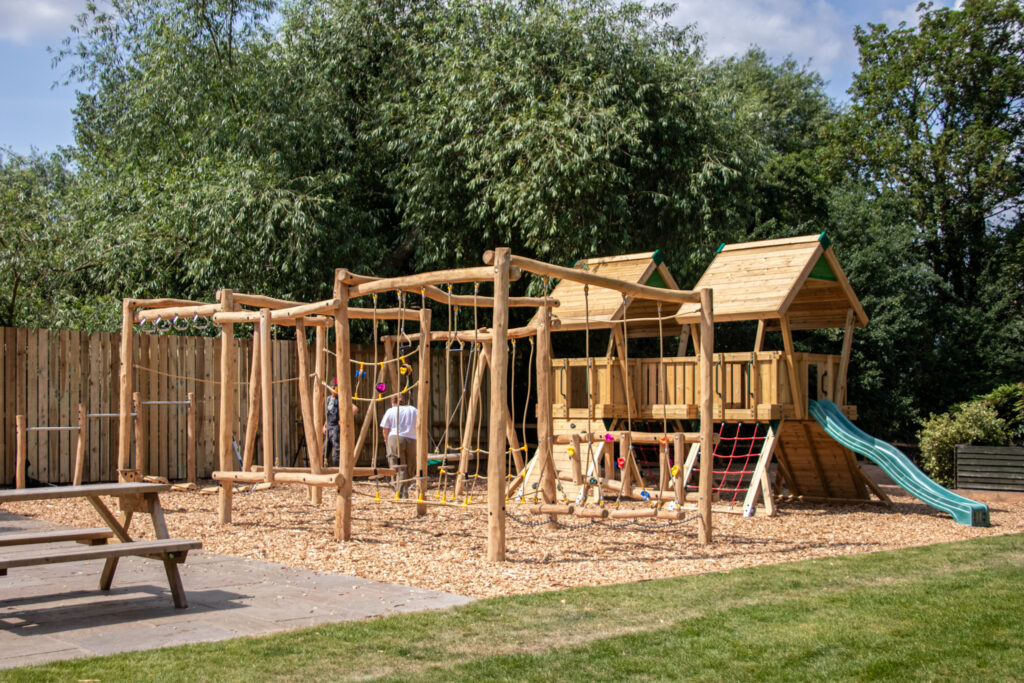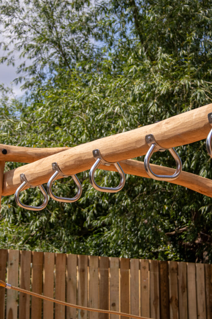 We designed, built, and installed a bespoke large Robinia Timber Trim Trail, complete with monkey bars and swings. To elevate the play offering further, we also installed a striking adventure tower (supplied by the client).