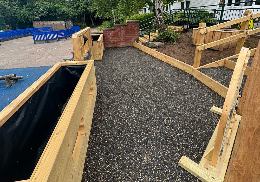 We carefully designed the KS1 area to align with their objectives, incorporating the natural environment and meaningful elements. A memorial tree planted for a child became the heart of the design, surrounded by a sensory path to bring the area back to life. The amphitheatre seating was nestled into the existing banking for a natural and functional outdoor classroom. Finally, the flooring seamlessly blended with the current paving slabs, creating a cohesive look throughout the space.