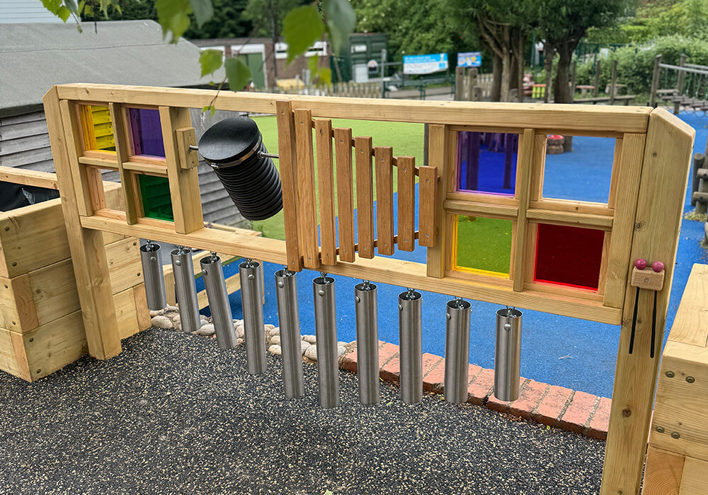 Dobcroft Primary wanted an engaging outdoor environment where children could learn and play in innovative ways. Their goals included three types of play: musical, roleplay and investigative. To achieve the school’s goals, we used a variety of materials and features: